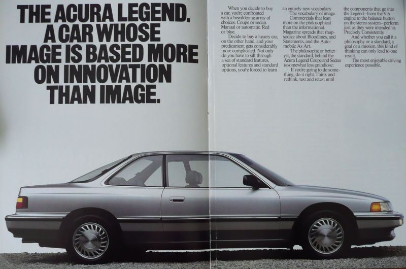 Een Engelstalige brochure met 20 pagina's. Uitgegeven in 1989. Beschrijft de Legend en de Integra model 1990.