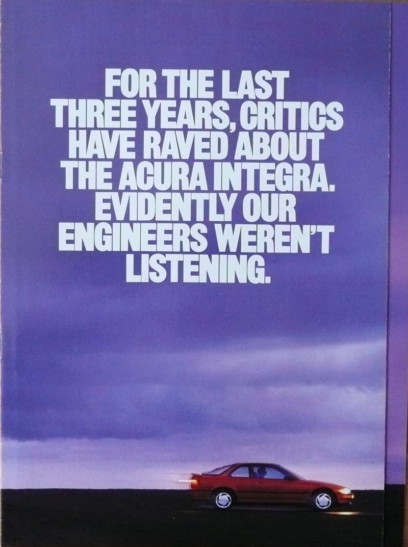 Acura is het luxe merk van Honda wat speciaal voor de Amerikaanse markt wordt gemaakt. Inmiddels wordt het merk ook in andere landen verkocht. De meeste brochures komen uit Amerika.