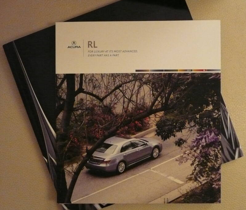 Kleine brochure in grote map. Alle modellen van Acura 2011 hadden een map met een kleine bijlage van het model.