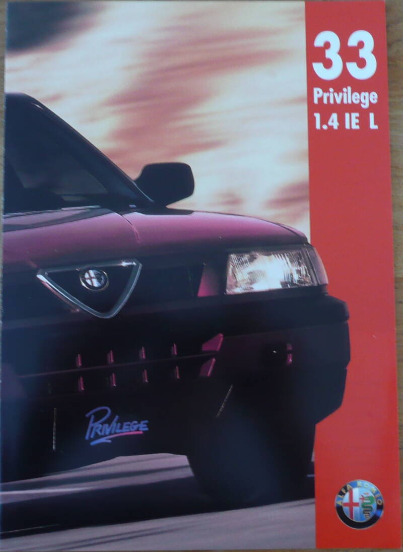 Een Nederlandstalige brochure met 4 pagina's. Uitgifte datum 06-1993. Beschrijft de 33 Privilege 1.4 IE L.