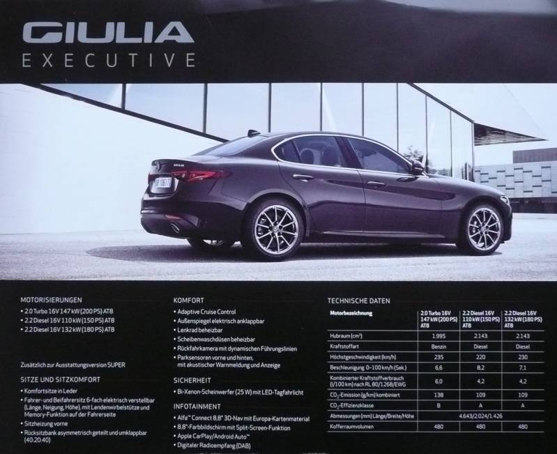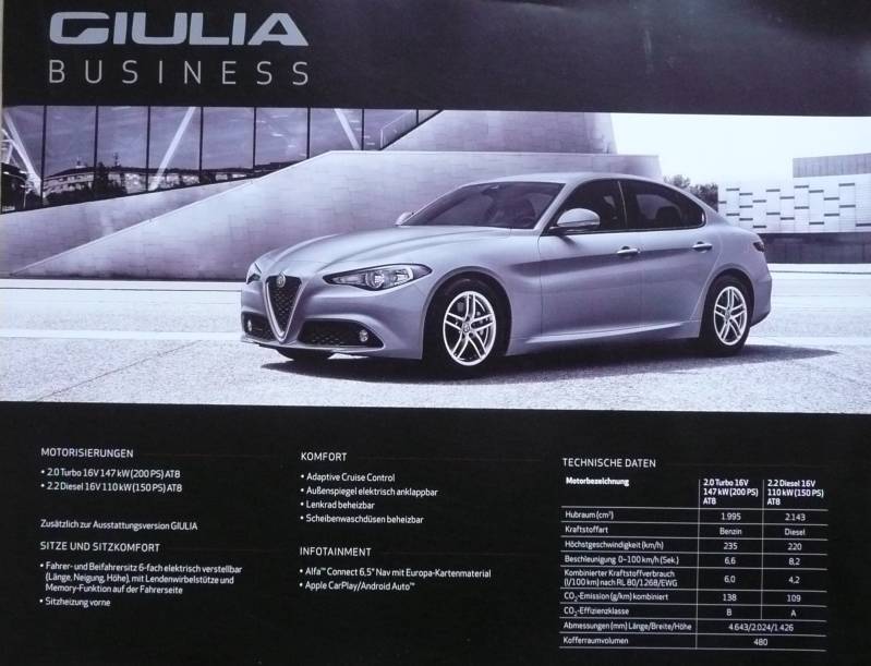 Een Duitstalige brochure met 8 pagina's. Uitgifte datum 06-2015. Beschrijft de Giulietta Collezione.