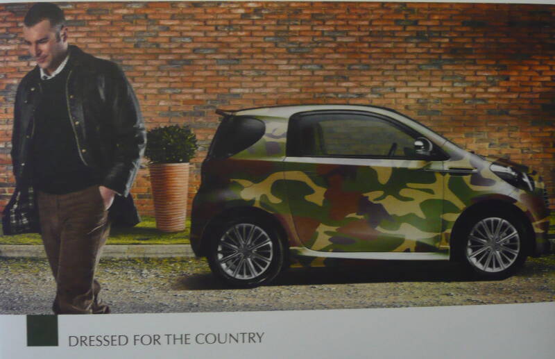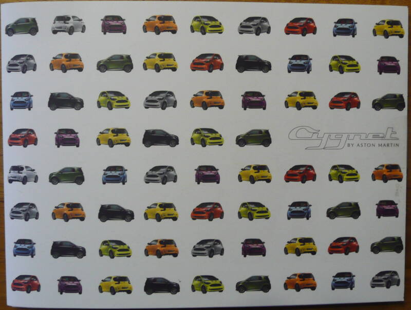 Een Engelstalige introductie brochure met 10 pagina's met cd rom. Uitgegeven in 2009. De brochure is uitvouwbaar. De auto is eigenlijk een aangepaste Toyota IQ, maar aangepast aan Aston Martin eisen.