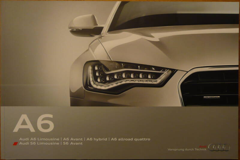 Een Duitstalige brochure met 142 pagina's. Uitgifte datum 04-2012. De brochure beschrijft de Limousine ,Avant, hybrid, allroad quattro en de S6 modellen.
