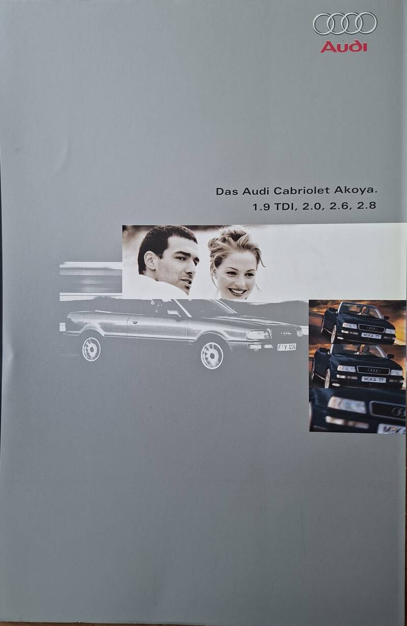 Een Duitstalige brochure met 8 pagina's. Uitgifte datum 02-1996. Beschrijft de Audi Cabriolet Akoya. Zit in bovenstaande map.