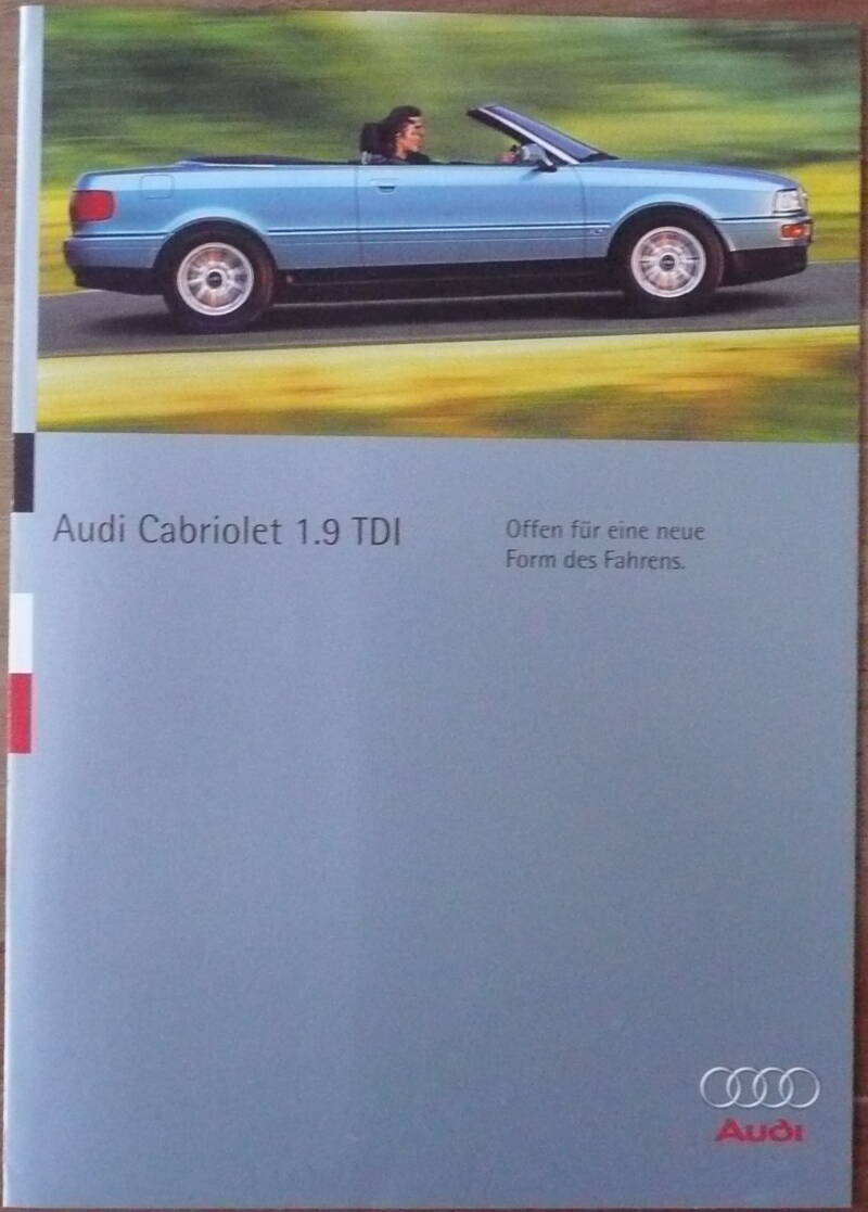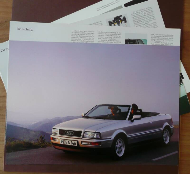 Een Duitstalige brochure met 8 pagina's. Uitgifte datum 10-1992. Beschrijft de Audi Cabriolet met V6-Motor.