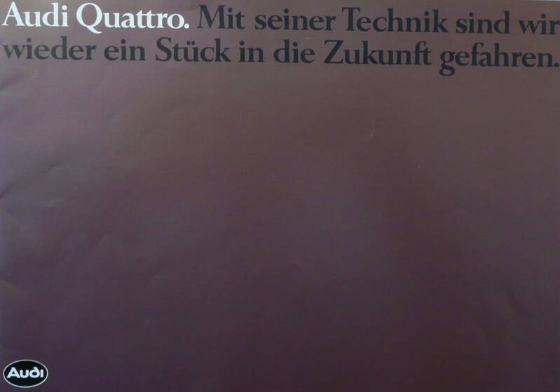 Een Duitstalige map met 9 losse bladen op A3 formaat. Uitgifte datum niet bekent. Beschrijft de quattro 20V.