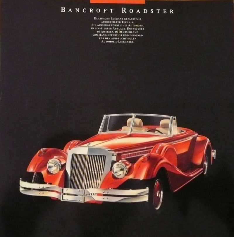 Bancroft was een Duits automerk die auto's maakten met een look uit de jaren 30. In de onderstaande auto zat een 5 liter V8 van de Mercedes SL. Zijn 300 stuks van gemaakt in 1991 tot 1993.