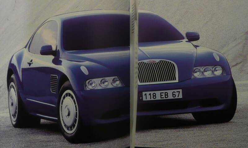 Een Engelstalige persmap van de concept car van de Veyron. Map bevat 6 foto's en 11 pagina's met tekst. Uitgifte datum 10-1999.