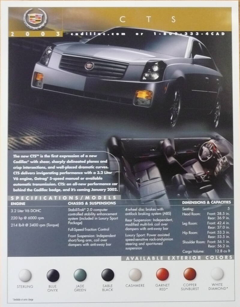 Een Engelstalige leaflet uit Amerika. Uitgegeven in 2001. Beschrijft model 2003.