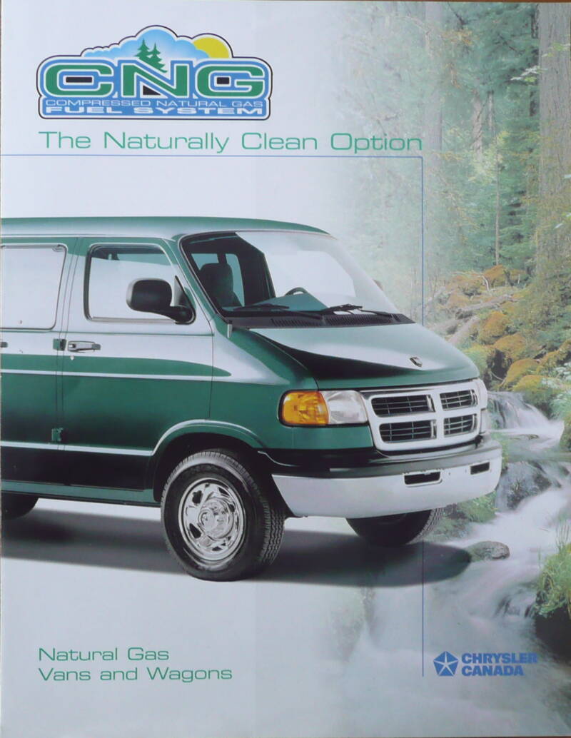 Een Engelstalige brochure met 4 pagina's uit Canada. Uitgifte datum is niet bekent, zo rond 1999. Beschrijft de Vans en Wagons van Chrysler en Dodge die rijden op CNG.