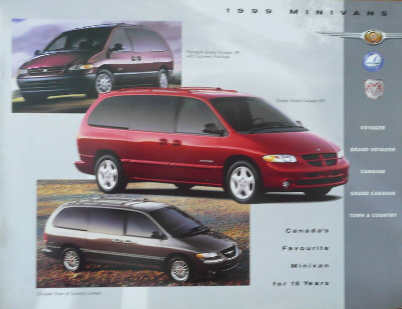 Een Engelstalige brochure met 8 pagina's uit Canada. Uitgifte datum 11-1998. Beschrijft de Minivans van 1999.