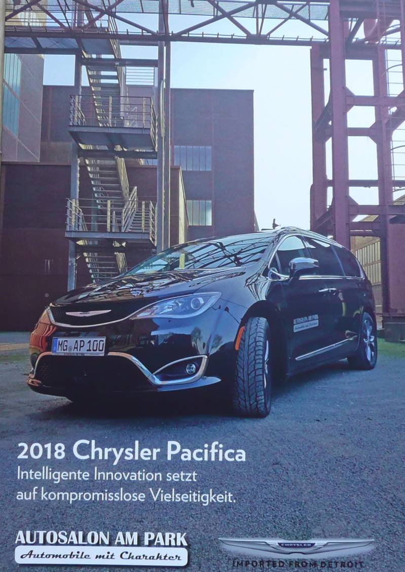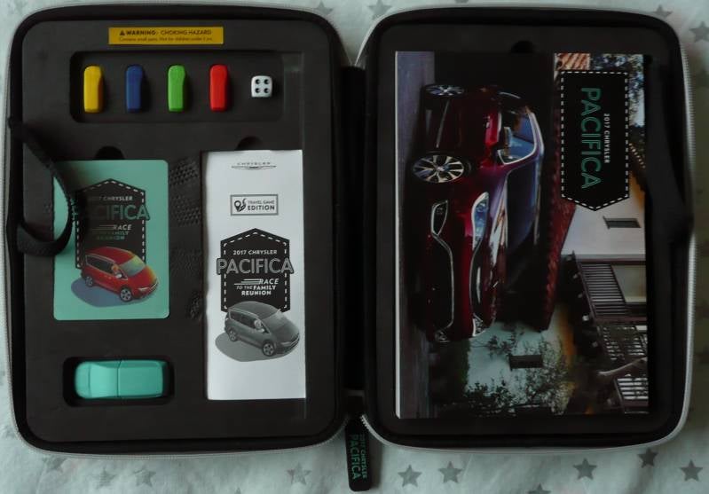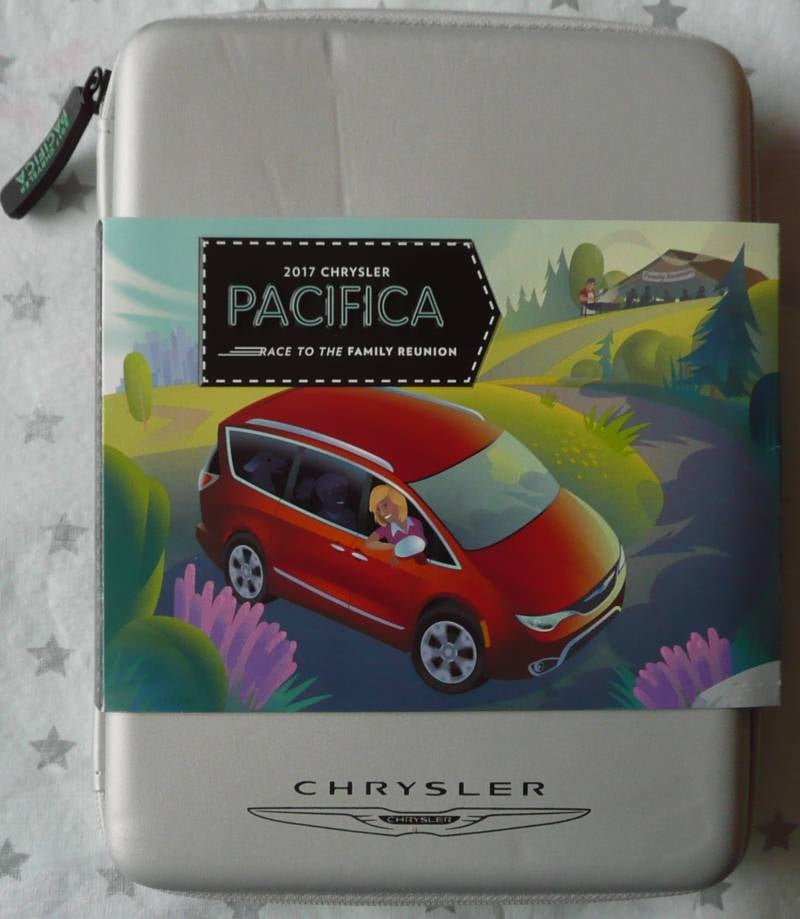 Een Persmap van de 2017 Chrysler Pacifica. Bevat een spel, een brochure (201 pagina's) en memorystick.