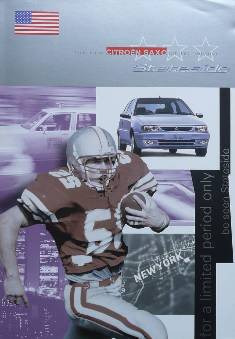 Een Engelstalige brochure van 4 pagina's uit Engeland. Uitgifte datum 11-1998. Beschrijft de Saxo Stateside.