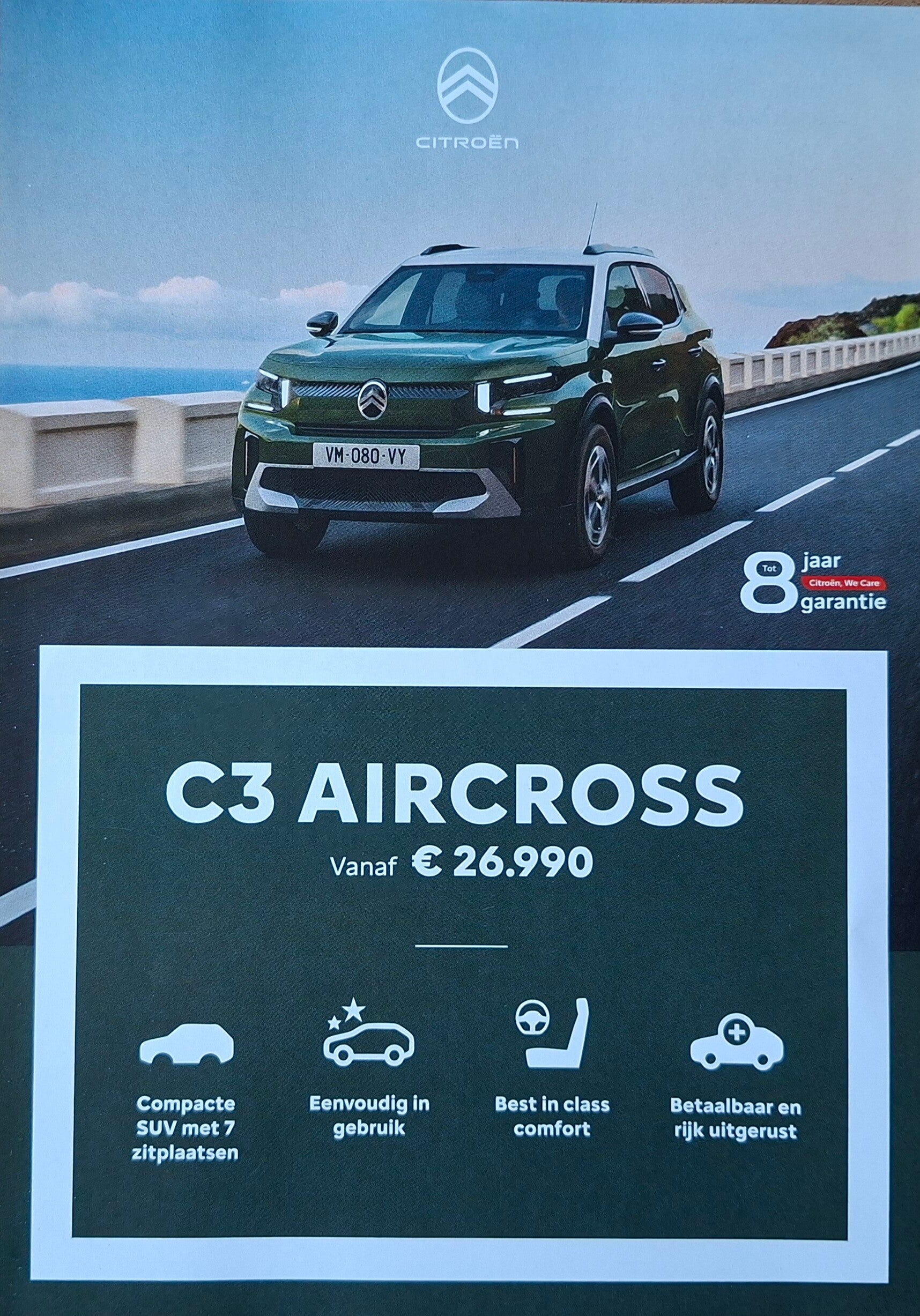 Een Nederlandstalige brochure met 6 pagina's. Uitgifte datum 01-2019. Beschrijft de C3 Aircross SUV Origins Collector's Edition.