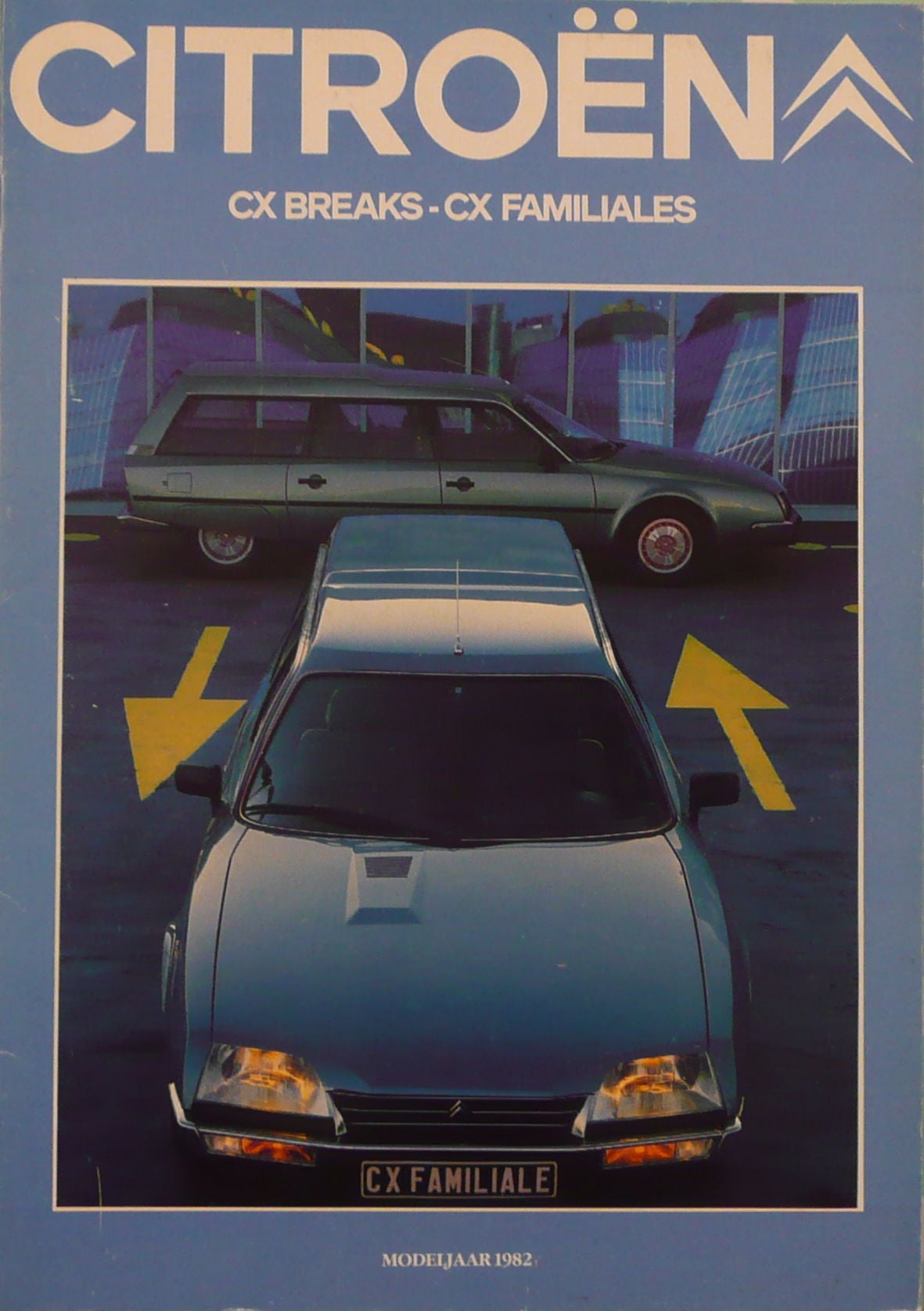 Een Nederlandstalige brochure met 12 pagina's. Uitgegeven in 1981. Beschrijft het model 1982 CX Break en Familiales.
