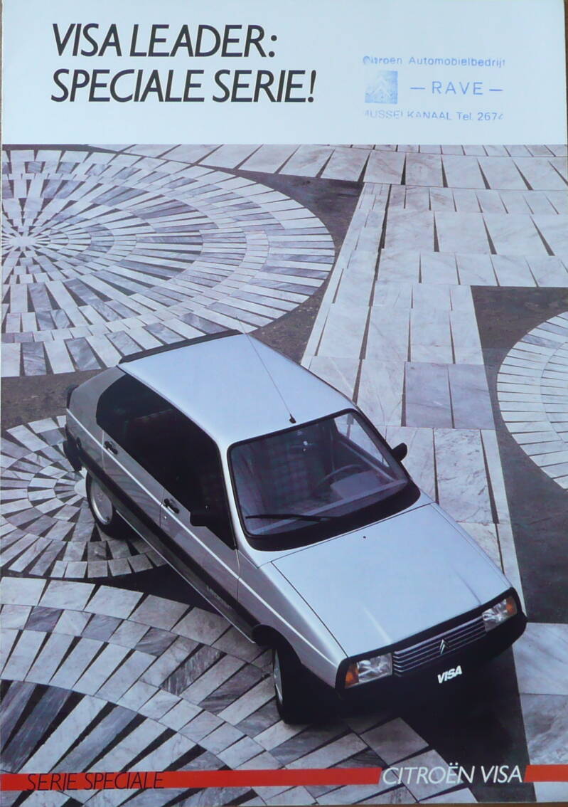 Een Nederlandstalige brochure met 4 pagina's. Uitgegeven in 1986 en beschrijft de Visa Leader model 1986.
