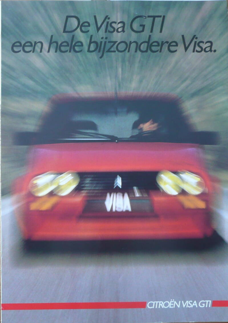 Een Nederlandstalige brochure met 6 pagina's. Uitgegeven in 1985 en beschrijft de Visa GTI model 1985.