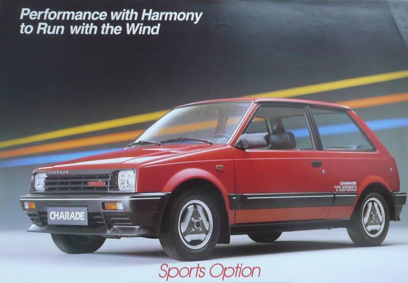 Een Engelstalige leaflet. Uitgifte datum niet bekent. Beschrijft de Charade Turbo met Sports Options.