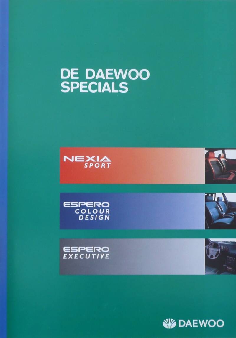 Een Nederlandstalige brochure met 8 pagina's. Uitgifte datum niet bekent. Beschrijft de Deawoo Specials.
