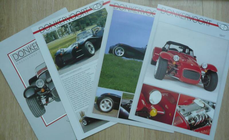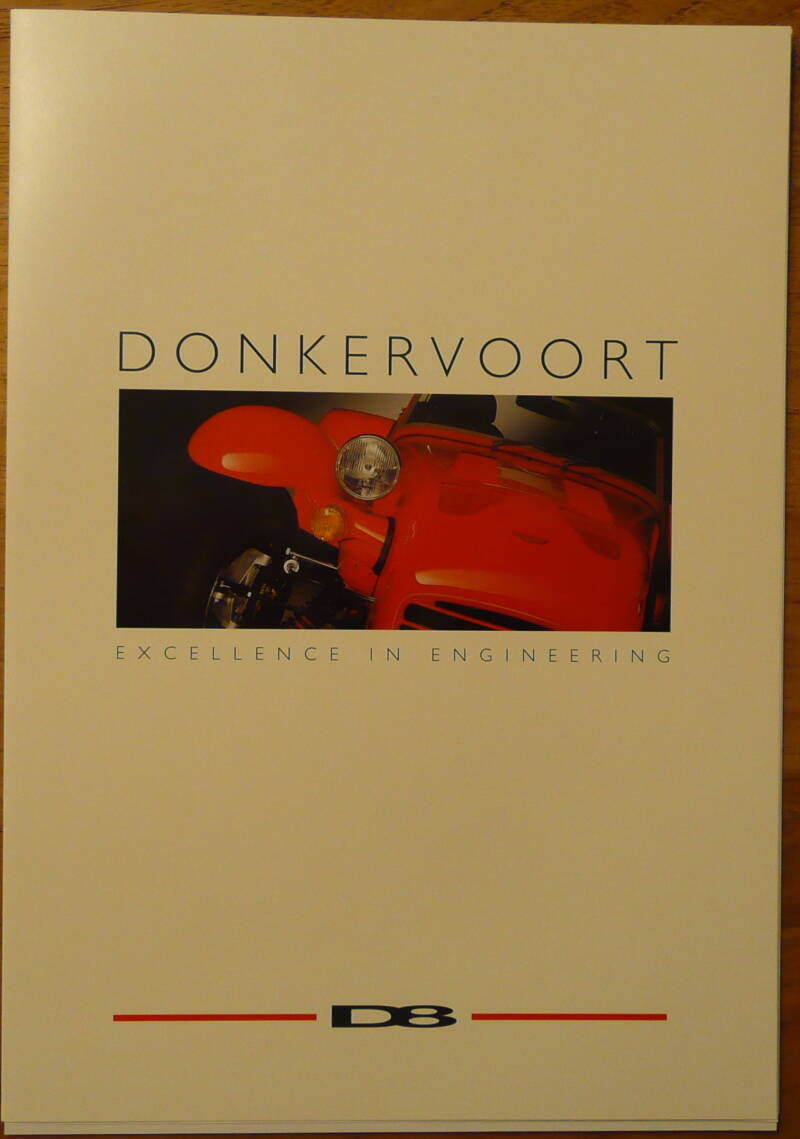 Donkervoort is een Nederlandse sportwagen waar de oude Lotus Seven model voor heeft gestaan. De auto is nu wel ontwikkelt naar de moderne maatstaven. Hieronder is een brochure weergegeven van de D8 en bestaat uit meerdere losse sheets. De D8 heeft in deze auto nog Ford motoren. Tegenwoordig zitten er Audi motoren in.
