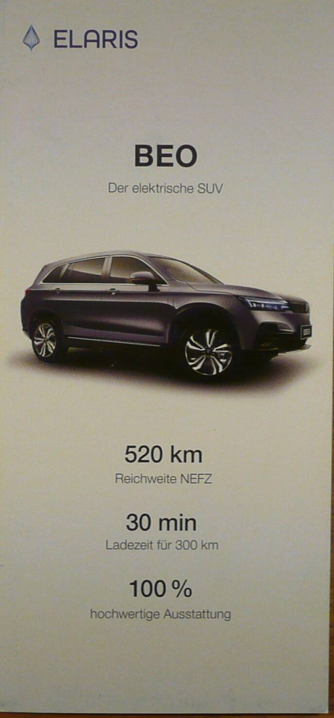 Elaris AG is een Duits bedrijf die is opgericht in 2020 en is gespecialiseerd in Chinese elektrische auto's.