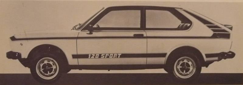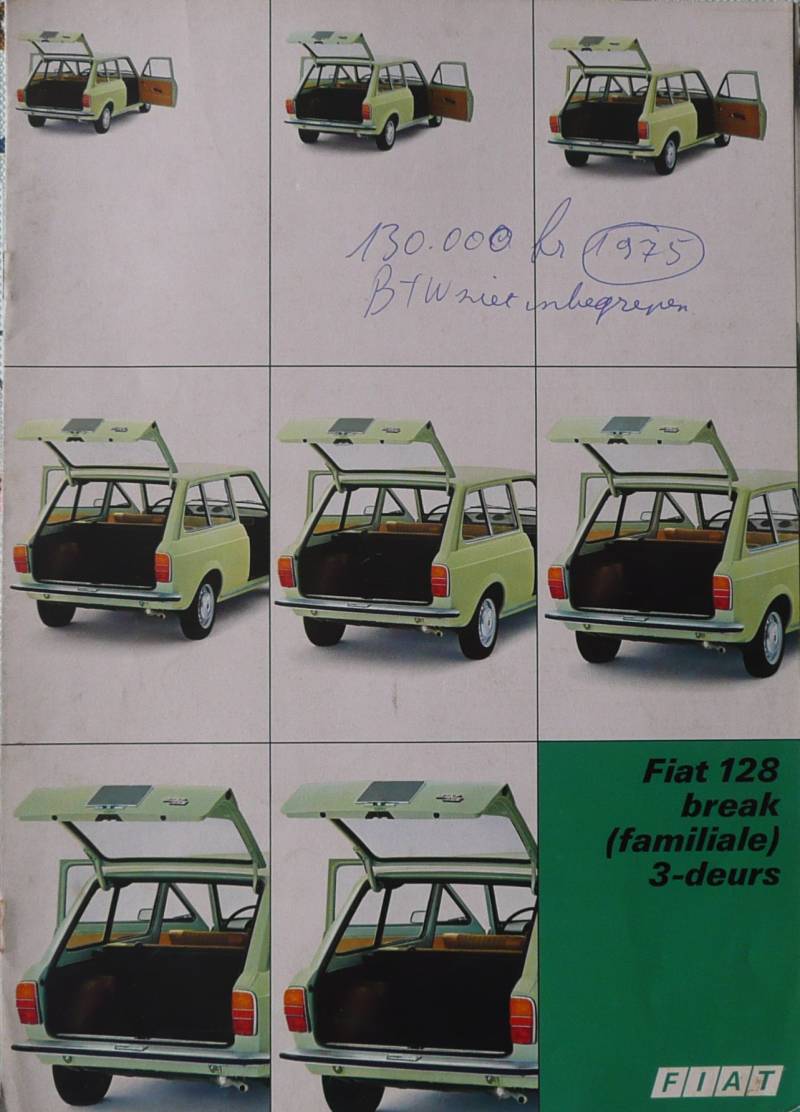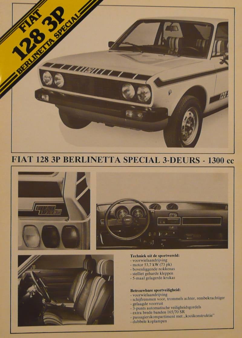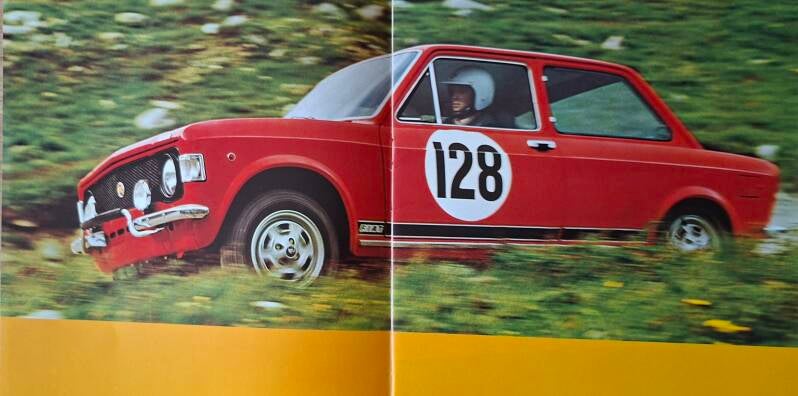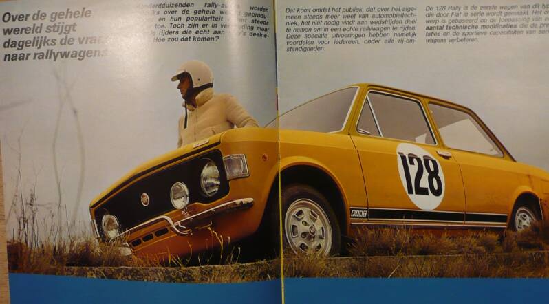 Een Nederlandstalige brochure met 16 pagina's. Uitgifte datum niet bekent. Beschrijft de 128 Rally 1300.