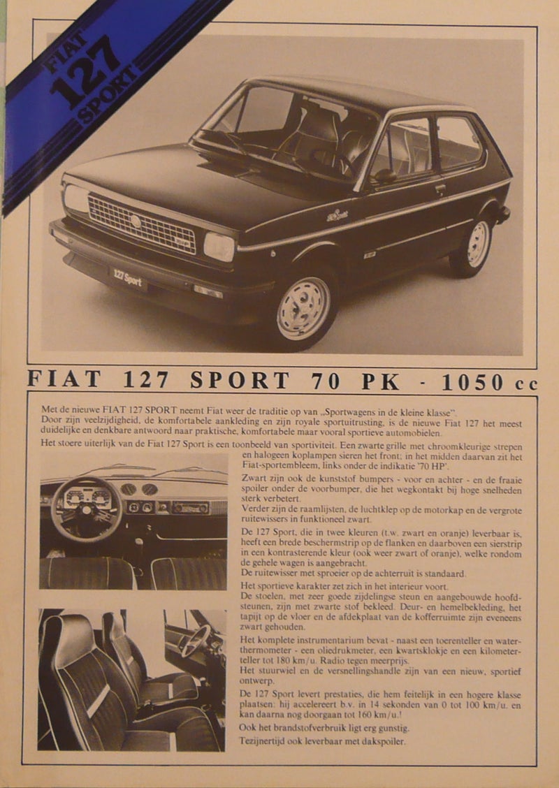 Een Nederlandstalige brochure met 16 pagina's. Uitgifte datum 09-1978. Beschrijft de 127 Sport.