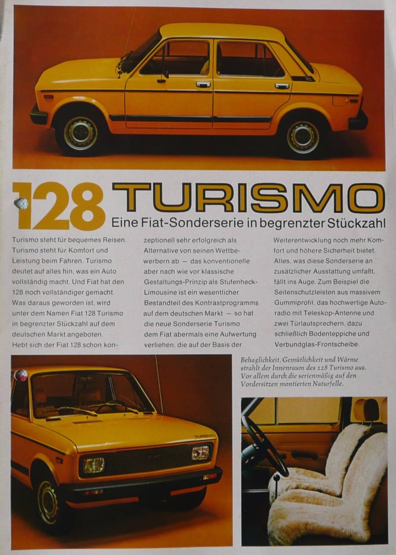 Een Duitstalige leaflet. Uitgifte datum 02-1978. Beschrijft de 128 Turismo.