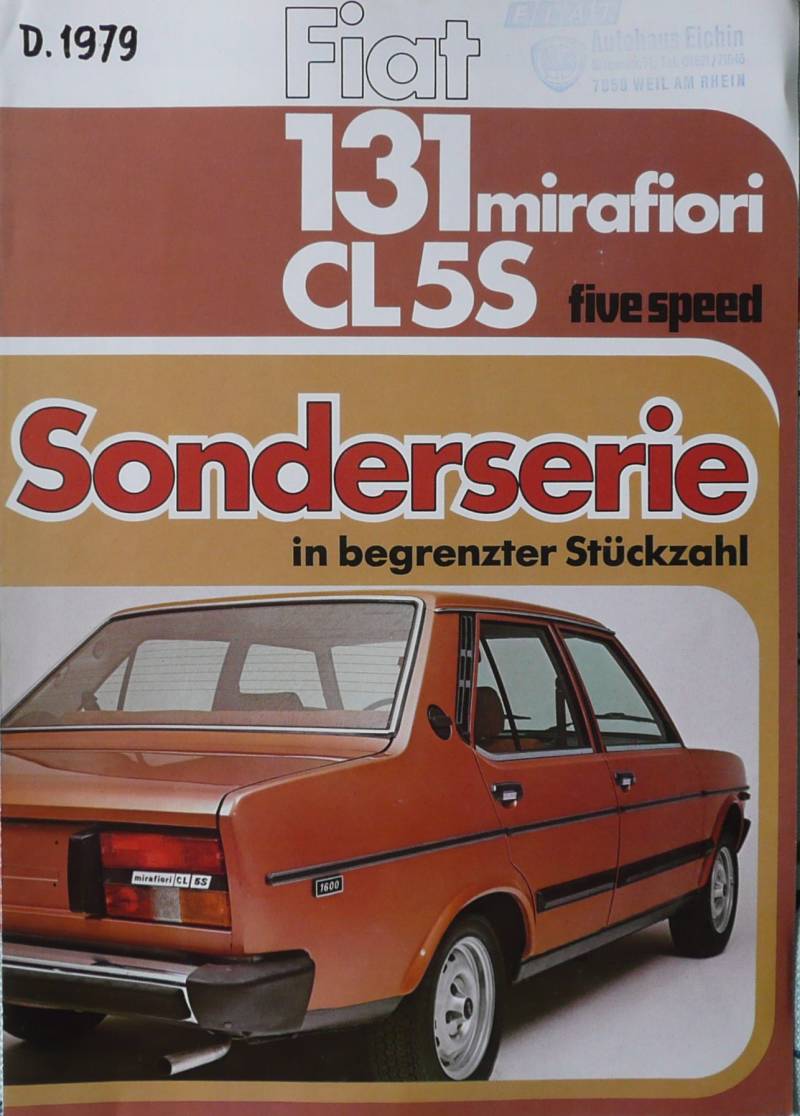 Een Duitstalige brochure met 4 pagina's. Uitgifte datum 02-1979. Beschrijft de 131 Mirafiori CL5S.