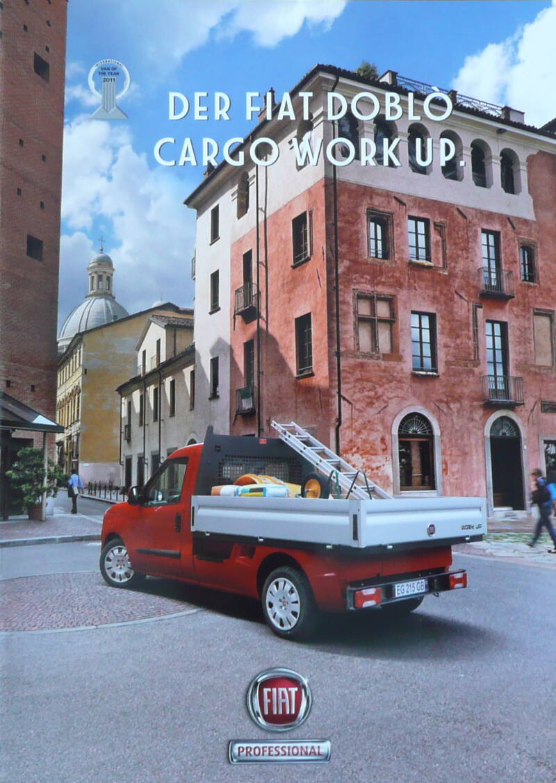 Een Duitstalige brochure met 12 pagina's. Uitgifte datum 10-2011. Beschrijft de Doblo Cargo Work up.