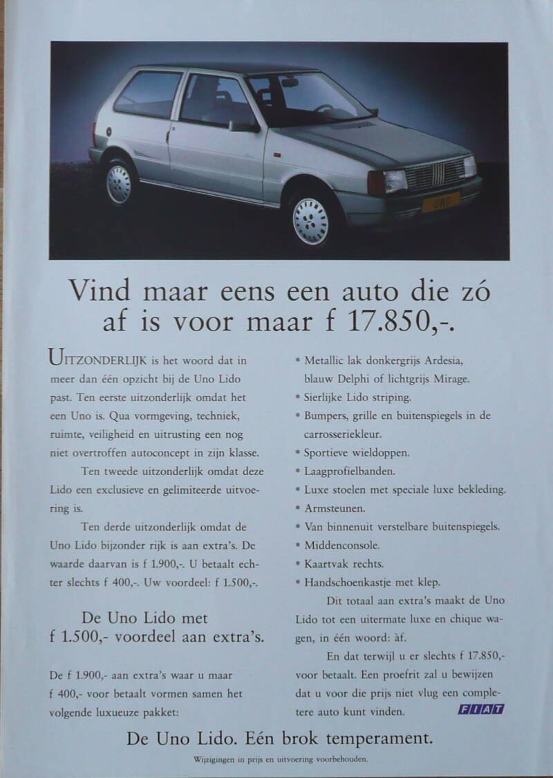 Een Nederlandstalige leaflet. Uitgegeven in 1987. Beschrijft de Uno Lido.