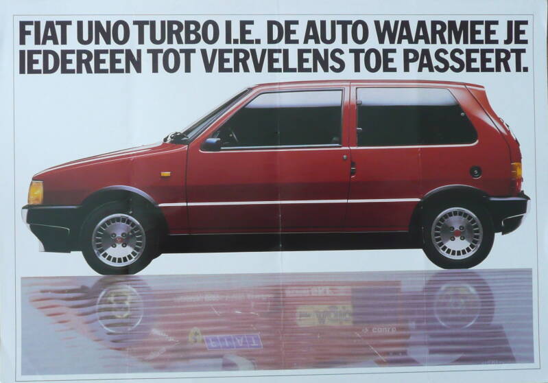 Een Nederlandstalige leaflet. Uitgegeven in 1985. Beschrijft de Uno Turbo I.E.