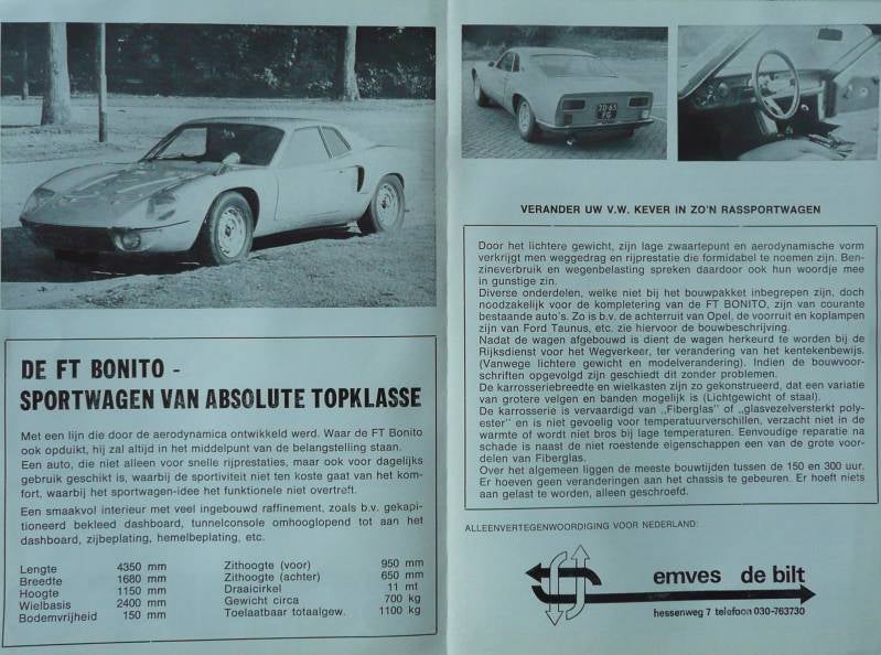 Een FT Bonito is een kitcar die eind jaren 60, begin jaren 70 op de markt verscheen. De letters FT staan voor Fiberfab Transformation, een Duitse firma die deze polyester body's maakte. De polyester body wordt bevestigd op het onderstel van een Volkswagen Kever. Samen met nog wat onderdelen van andere auto's kon men toentertijd een relatief low-budget sportauto bouwen.