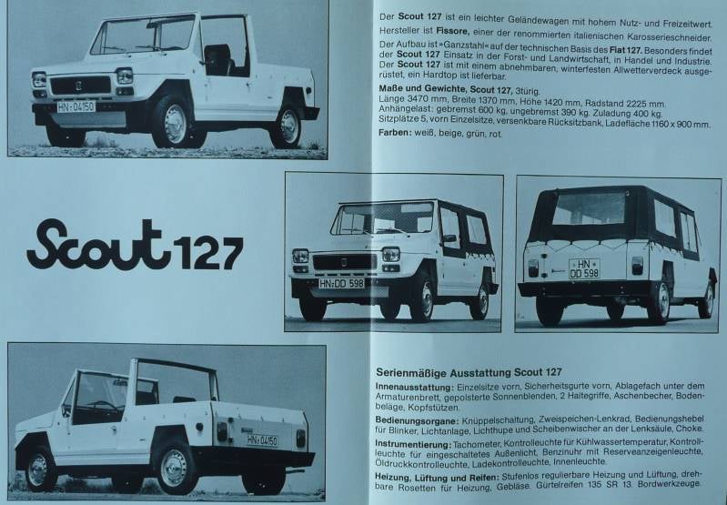 In 1971 stond het proto type van de Scout 127 op de beurs in Turijn. Er zijn tot ongeveer 1984 ongeveer 2000 auto's van de gemaakt door de Italiaanse carrosserie bouwer. De Basis was een Fiat 127.