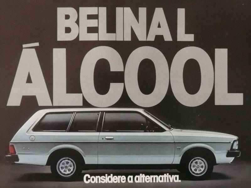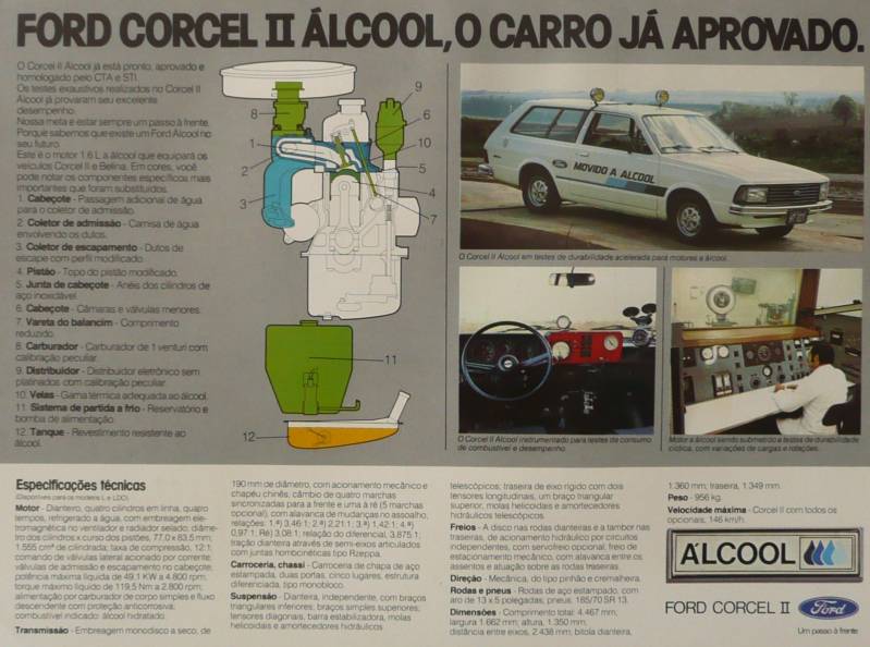 Een Braziliaanse leaflet van de Corcel Belina L Alcool. Uitgegeven in 1980? Een auto met motor die loopt op alcohol.