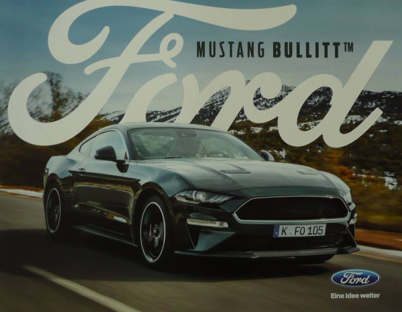 Een Duitstalige brochure met 6 pagina's. Uitgifte datum 06-2018. Beschrijft de Mustang Bullitt. Is ook een 11-2019 versie van.