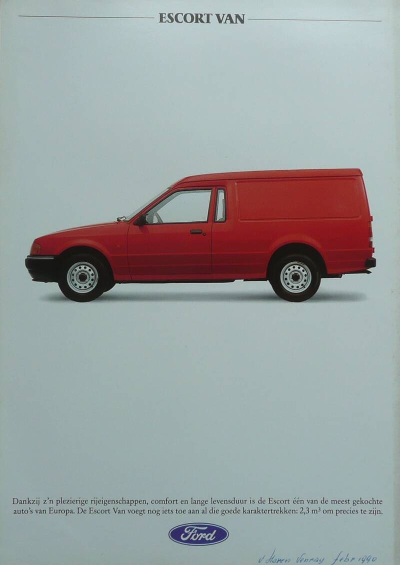 Een Nederlandstalige leaflet. Uitgifte datum niet bekent, zo rond 1990. Beschrijft de Escort Van.