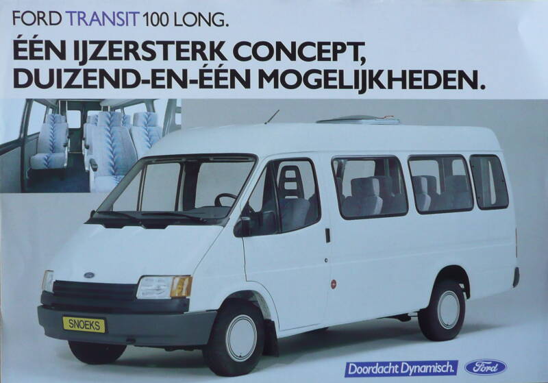 Een Nederlandstalige leaflet. Uitgifte datum niet bekent, zo rond 1988. Beschrijft de Transit 100 Long.