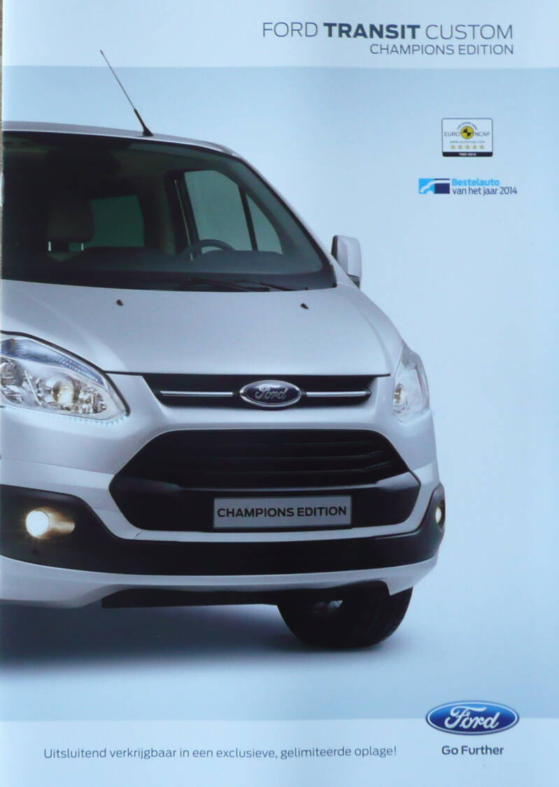 Een Nederlandstalige brochure met 10 pagina's. Uitgifte datum 01-2014. Beschrijft de Transit Custom Champions Edition.