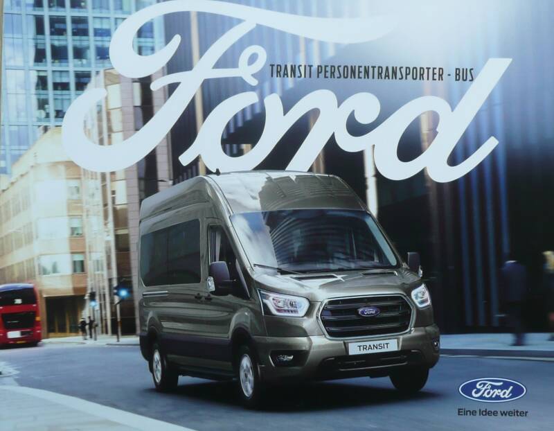 Een Duitstalige brochure met 50 pagina's. Uitgifte datum 05-2019. Beschrijft de Transit Bus en Personentransporter.