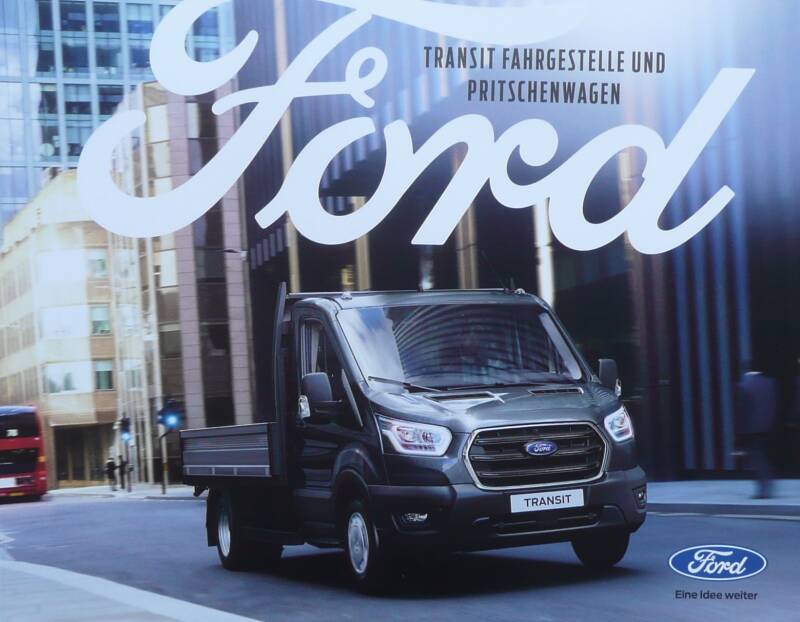 Een Duitstalige brochure met 58 pagina's. Uitgifte datum 05-2019. Beschrijft de Transit Fahrgestel en Pritschenwagen.