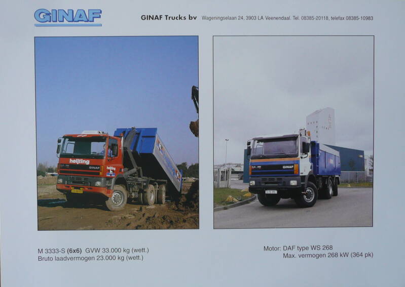 Hieronder zijn 9 enkelzijdige leaflets weergegeven van verschillende Ginaf modellen. Uitgifte datum niet bekent, zo rond 1994.