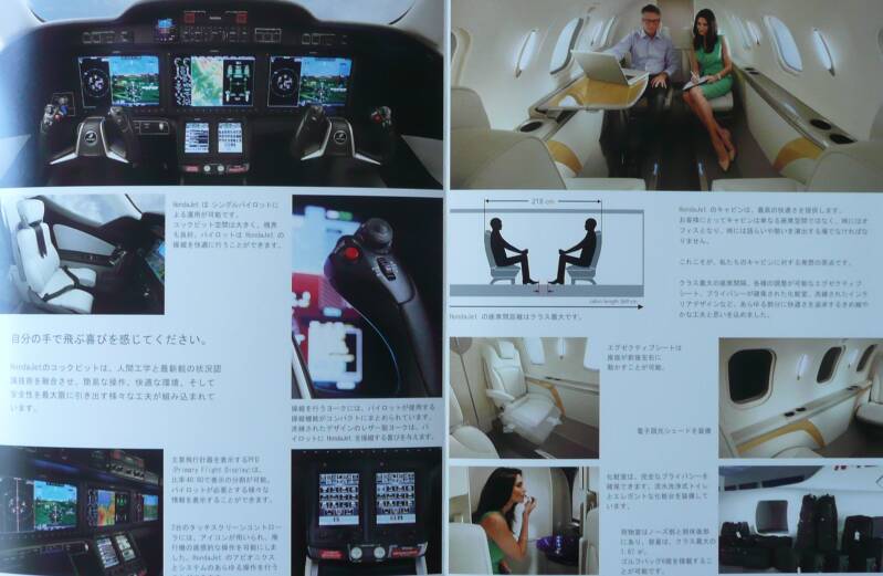 Een Japanse vliegtuigbrochure van Honda met 6 pagina's uit Amerika? Uitgegeven in 2015.