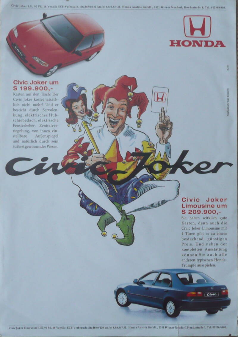 Een Duitstalige enkelzijdige leaflet uit Oostenrijk. Uitgifte datum is niet bekent, zo rond 1990. Beschrijft de Civic Joker.