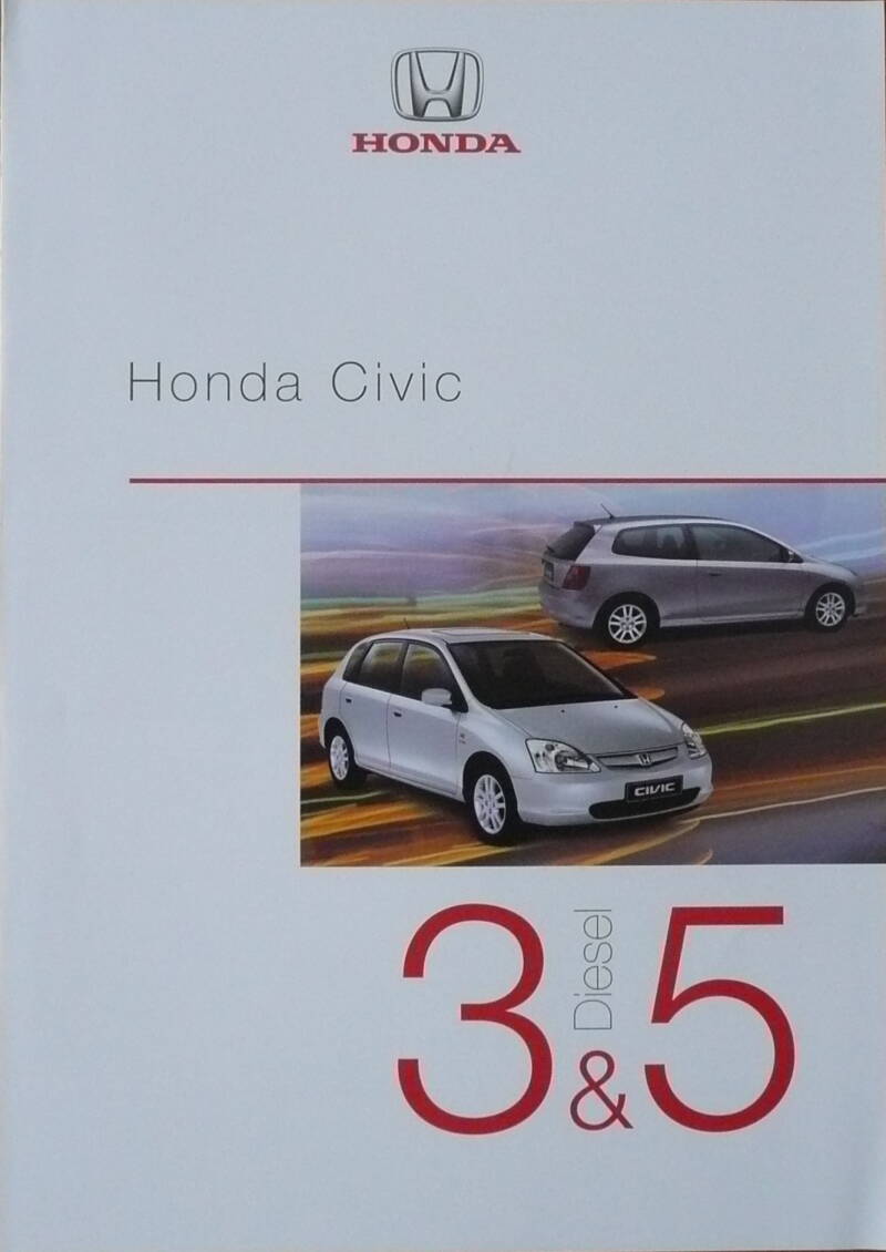 Een Nederlandstalige brochure met 4 pagina's. Uitgifte datum niet bekent, zo rond 2002. Beschrijft de Civic Diesel.