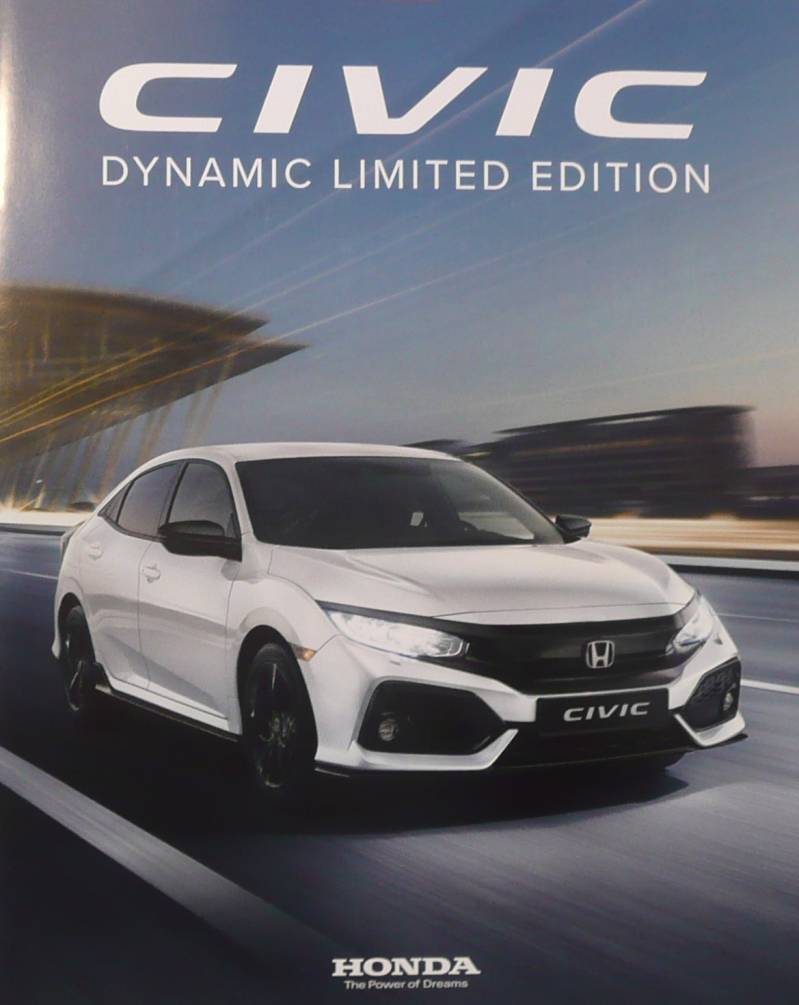 Een Duitstalige brochure met 8 pagina's. Uitgifte datum 12-2018. Beschrijft de Civic Dynamic Limited Edition.