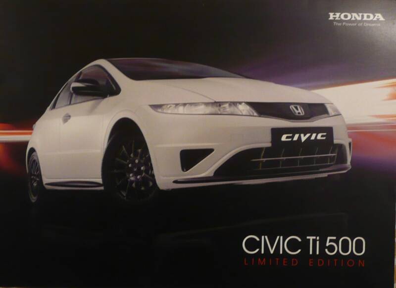 Een Engelstalige brochure met 6 pagina's uit Engeland. Uitgifte datum 02-2011. Beschrijft de Civic Ti 500 Limited Edition.