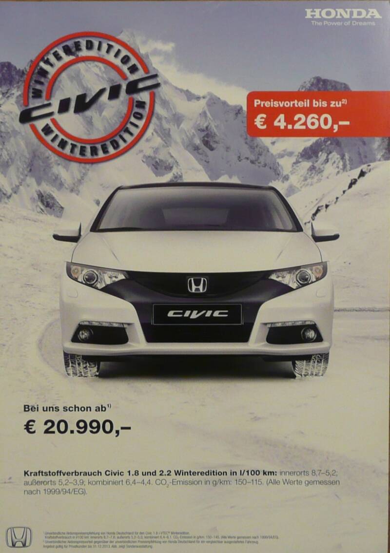 Een Duitstalige leaflet. Uitgifte datum 10-2013. Beschrijft de Civic Winter Edition.