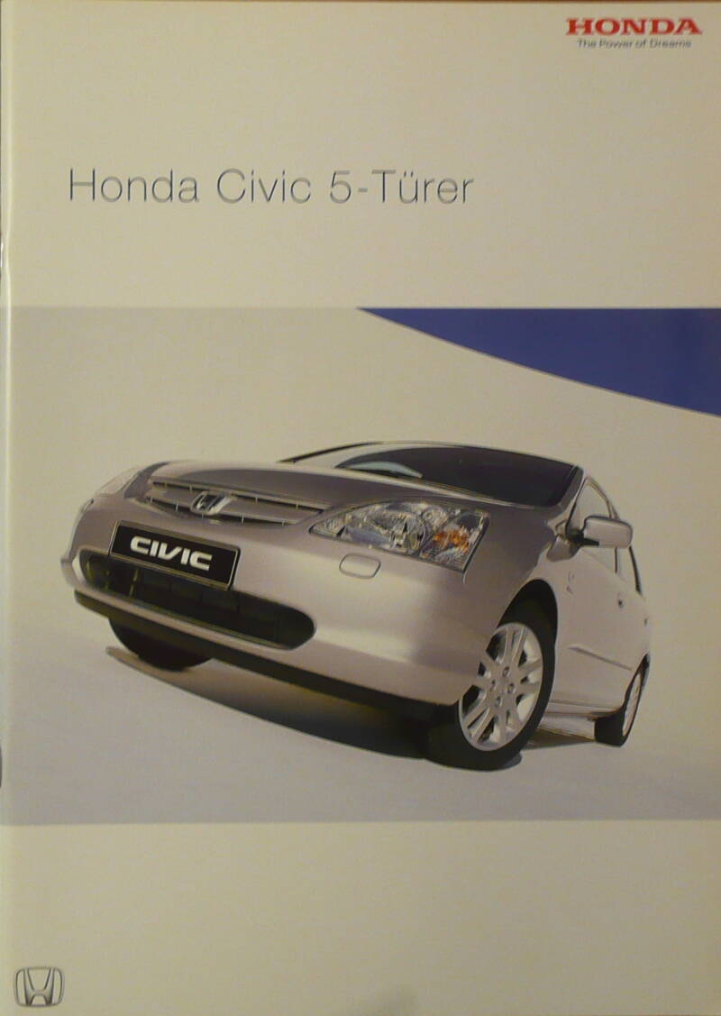 Een Duitstalige brochure met 8 pagina's. Uitgifte datum is niet bekent, zo rond 1996. Beschrijft de Civic 5 deurs , College, Comfort en City edition modellen. Brochure is uitvouwbaar tot poster.