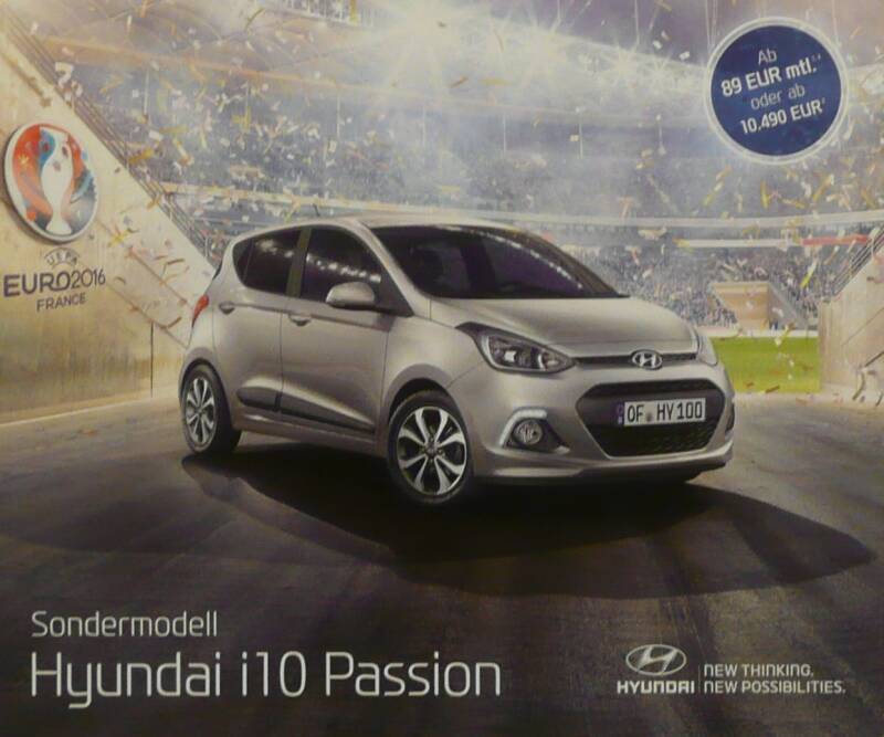 Een Duitstalige brochure met 4 pagina's. Uitgifte datum 07-2016. Beschrijft de i10 Passion.